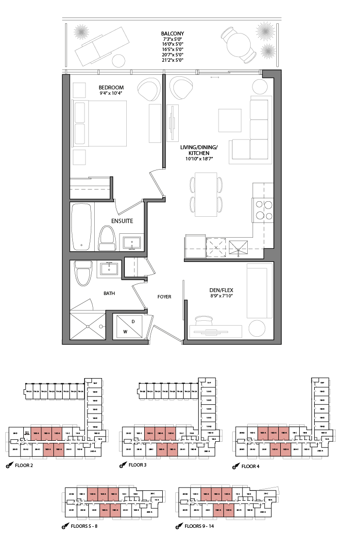 590/592/596/599 sq. ft. | 1 bedroom + flex