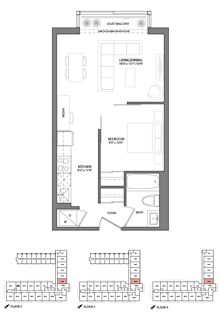 499/528 sq. ft. | 1 bedroom + media