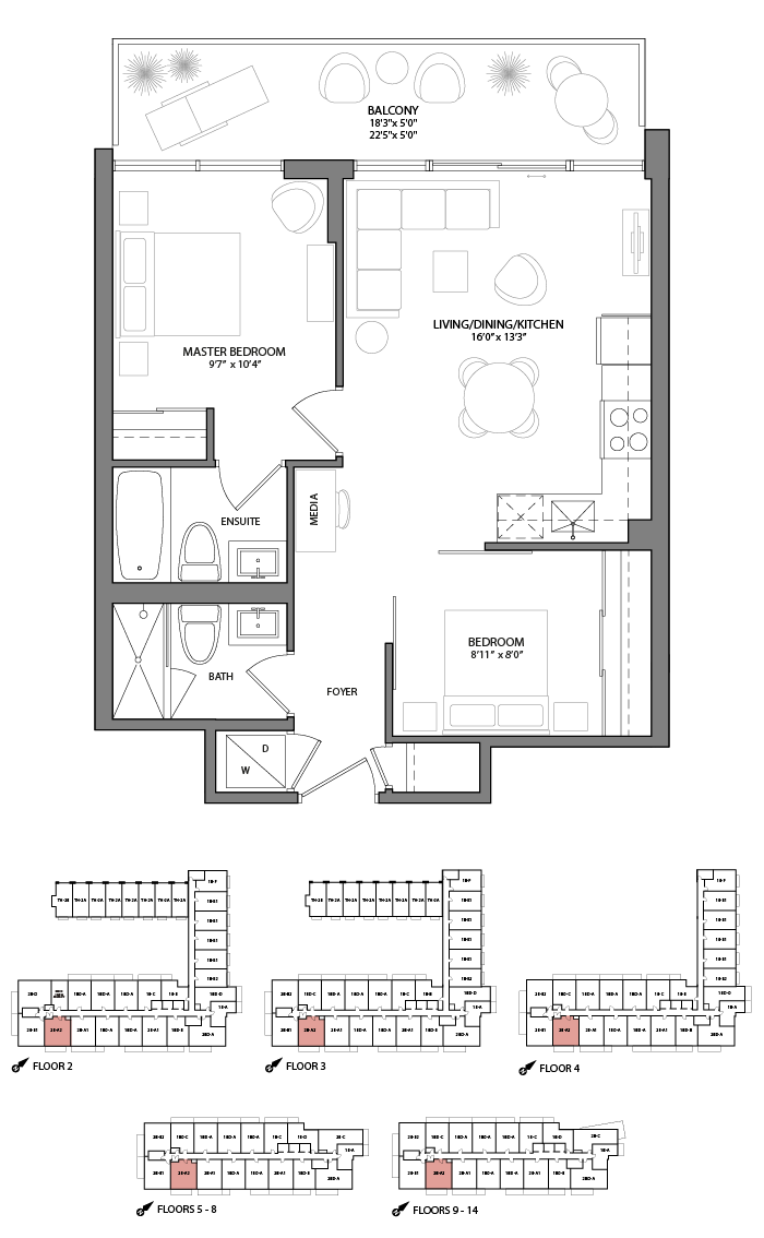 632/634 sq. ft. | 2 bedroom + Media