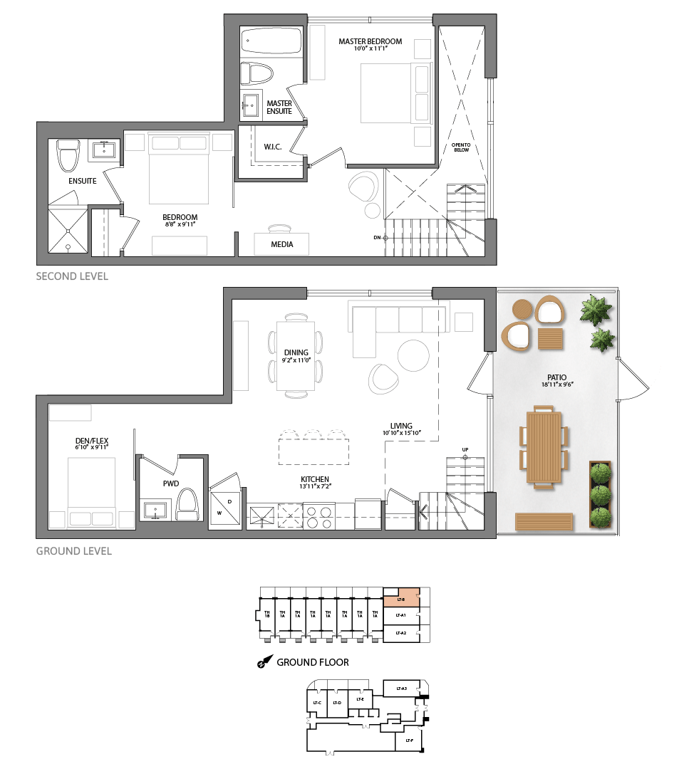 1,063 sq. ft. | 2 bedroom + flex + media